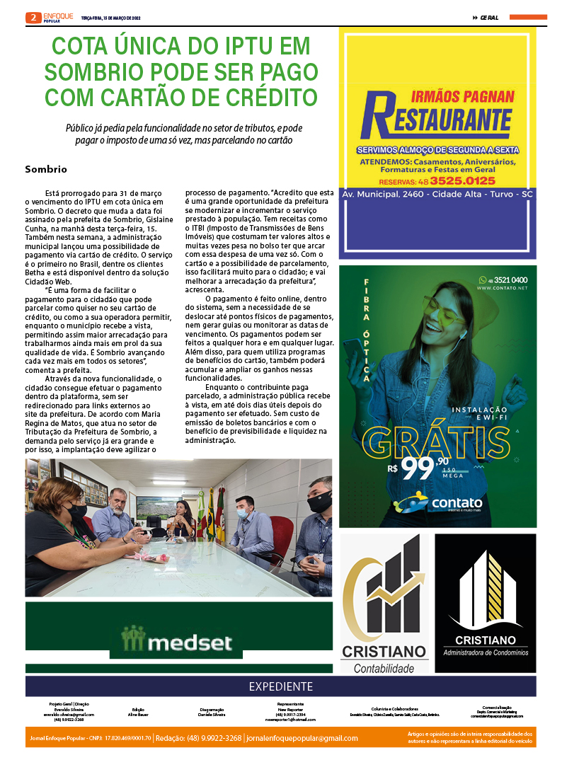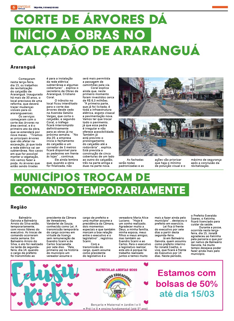 Edição 2596 – 15-03-2022 / Jornal Enfoque Popular Editar