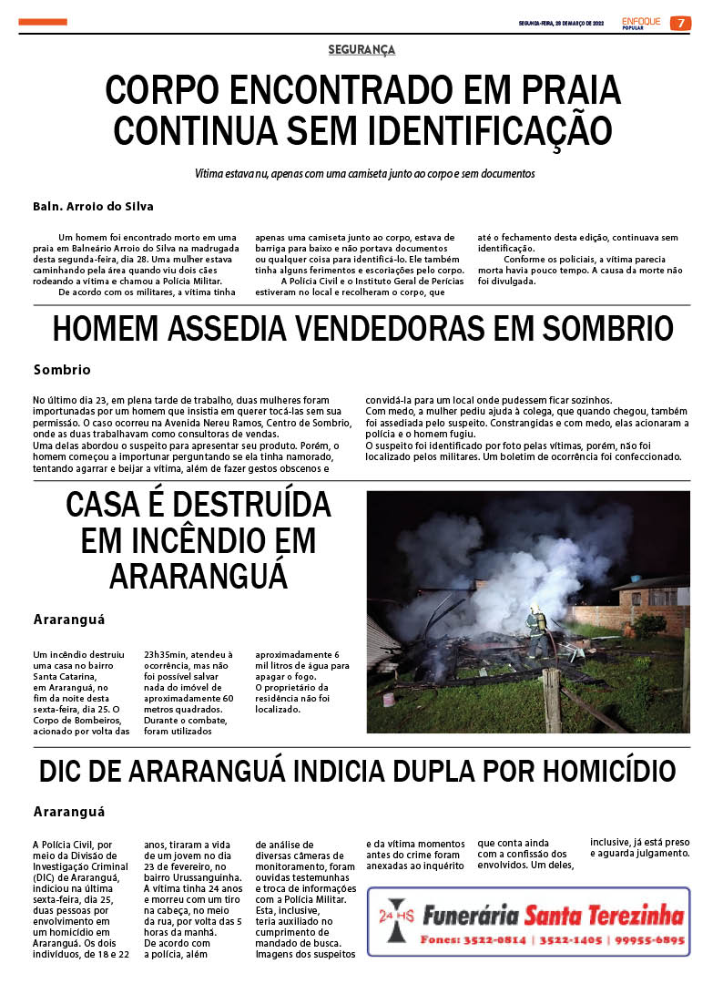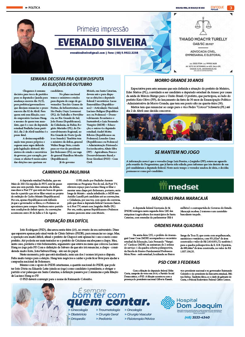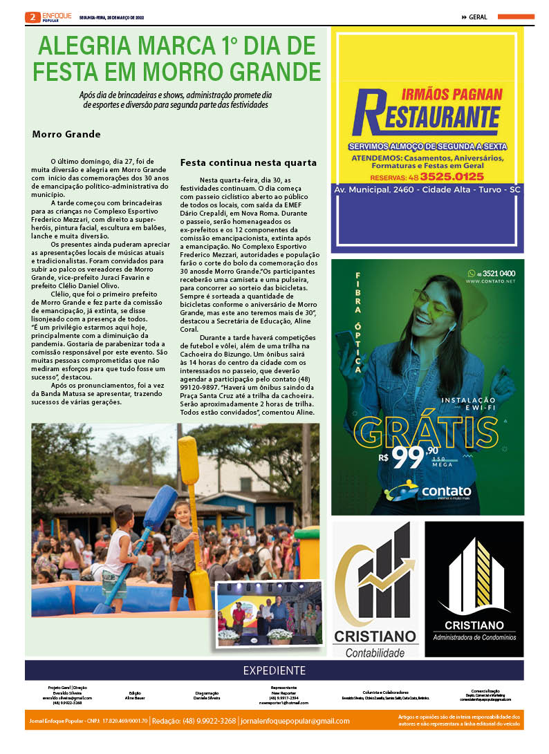 EDIÇÃO 2603 – 28-03-2022 / JORNAL ENFOQUE POPULAR