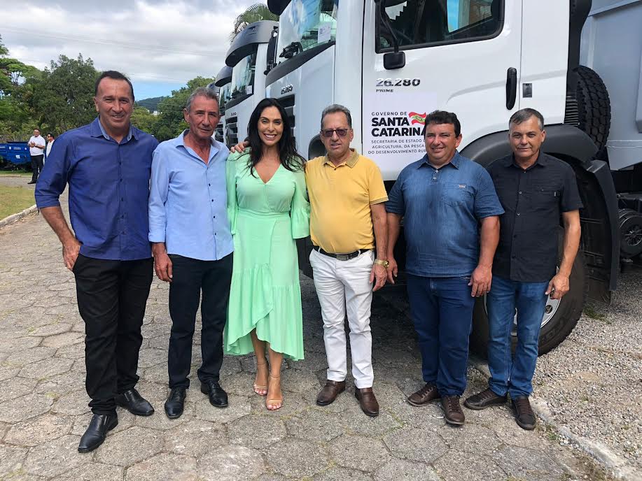 A deputada federal Geovania de Sá (PSDB) entregou nesta segunda-feira (28) dez máquinas à agricultura dos municípios de Santa Catarina, com emendas da parlamentar (R$ 4 milhões) e contrapartida do Governo do Estado. Maracajá recebeu 2 tratores e um caminhão basculante traçado.