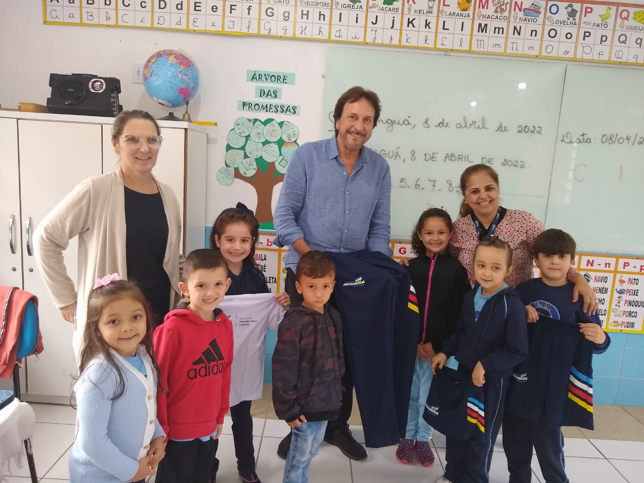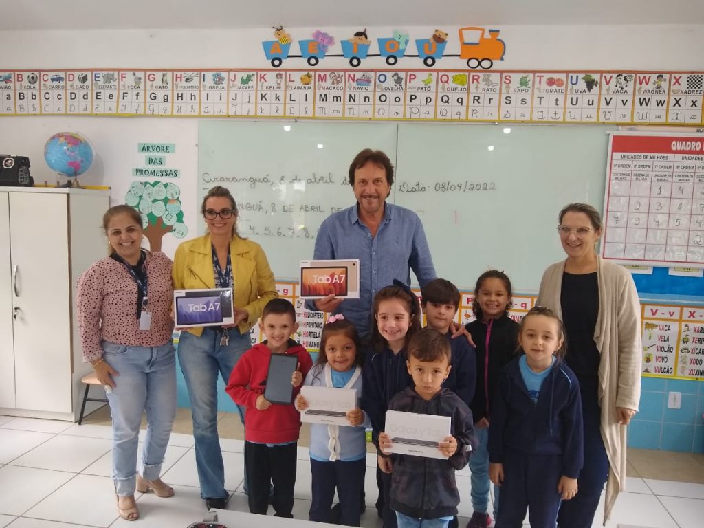 Foi feita a entrega de 47 kits de uniformes escolares e mais 20 tablets para a escola Professora Judite Brígida Lúcio, localizada na Sanga da Toca I.