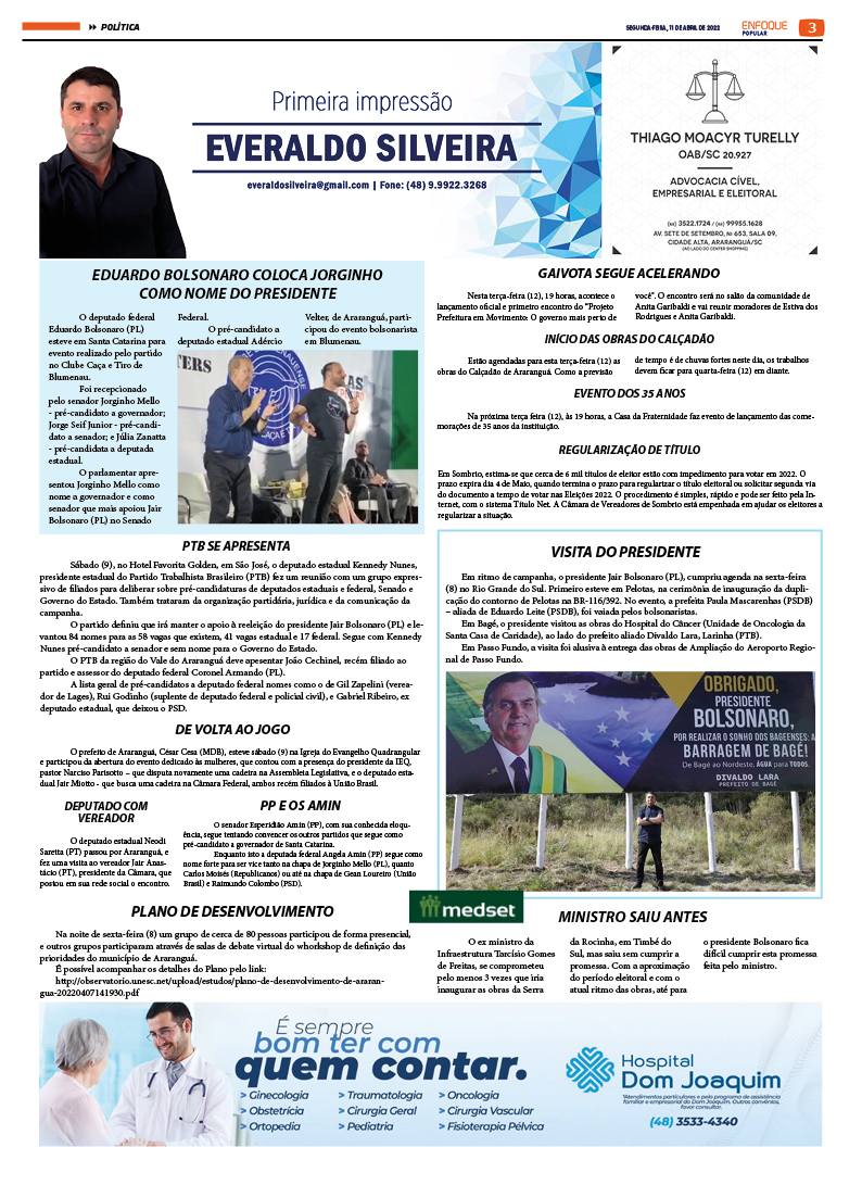EDIÇÃO 2611 – 11-04-2022 / JORNAL ENFOQUE POPULAR