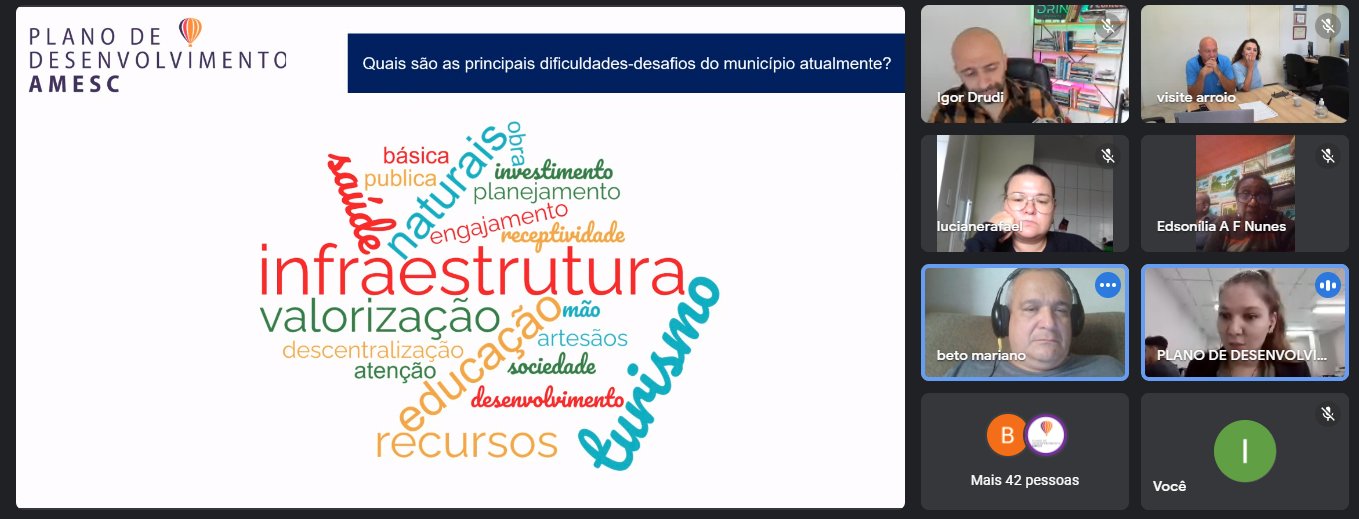 Reivindicações, desejos, pontos de vista e planos para o futuro de Balneário Arroio do Silva foram foco das discussões do workshop promovido nesta terça-feira (12/4). O encontro realizado de forma virtual reuniu representantes de diferentes espaços para discussões que dão as primeiras direções do Plano de Desenvolvimento Socioeconômico do Município.