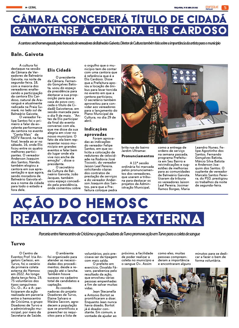 EDIÇÃO 2615 – 19-04-2022 / JORNAL ENFOQUE POPULAR