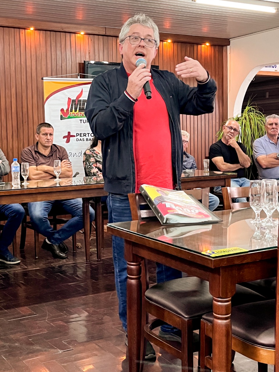 Edson Jair Dagostin, o Pisca, ex-vice prefeito atual presidente do MDB Turvo, em seu discurso, falou da união e da força do partido.