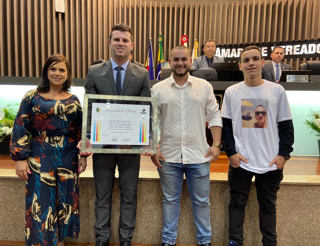 Outros vereadores pontuaram a importância do homenageado para a cidade, ele que era envolvido em diversos segmentos e ações da sociedade. Sua esposa, Andreza, agradeceu em nome da família. “Em minha história de vida eu nunca vi uma trajetória parecida com a do Sérgio. Ele nessa curta passagem por aqui só fez o bem e foi um grande amigo para muitos”.
