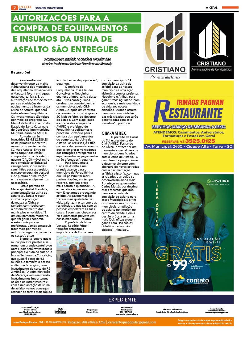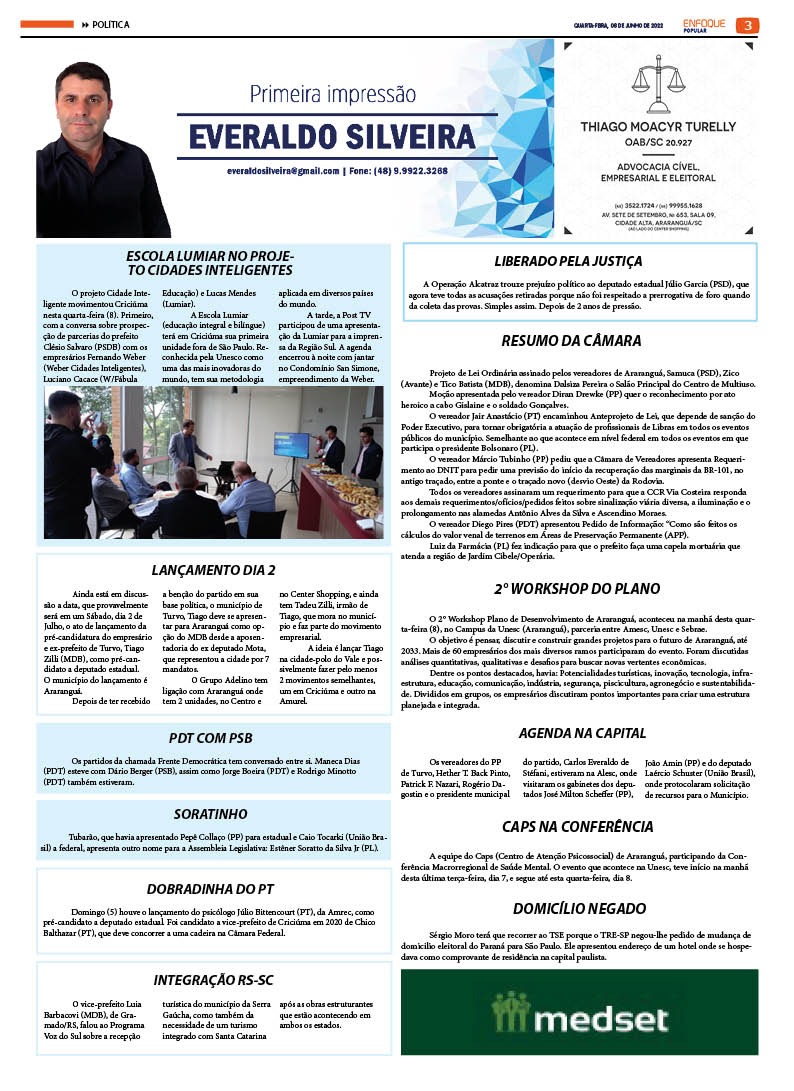 Edição 2642 – 08-06-2022 – Quarta-feira – JORNAL ENFOQUE POPULAR