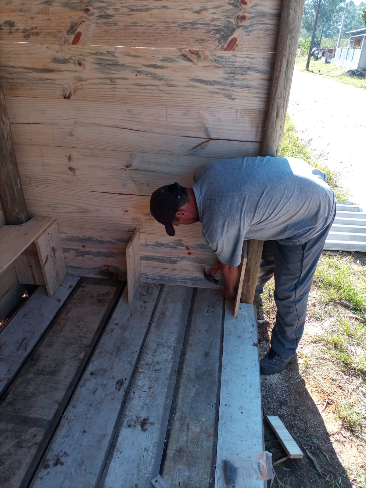 A partir da demanda das comunidades de Santa Gertrudes e São Francisco, em Sombrio, um grupo de lideranças construiu uma parada de ônibus.