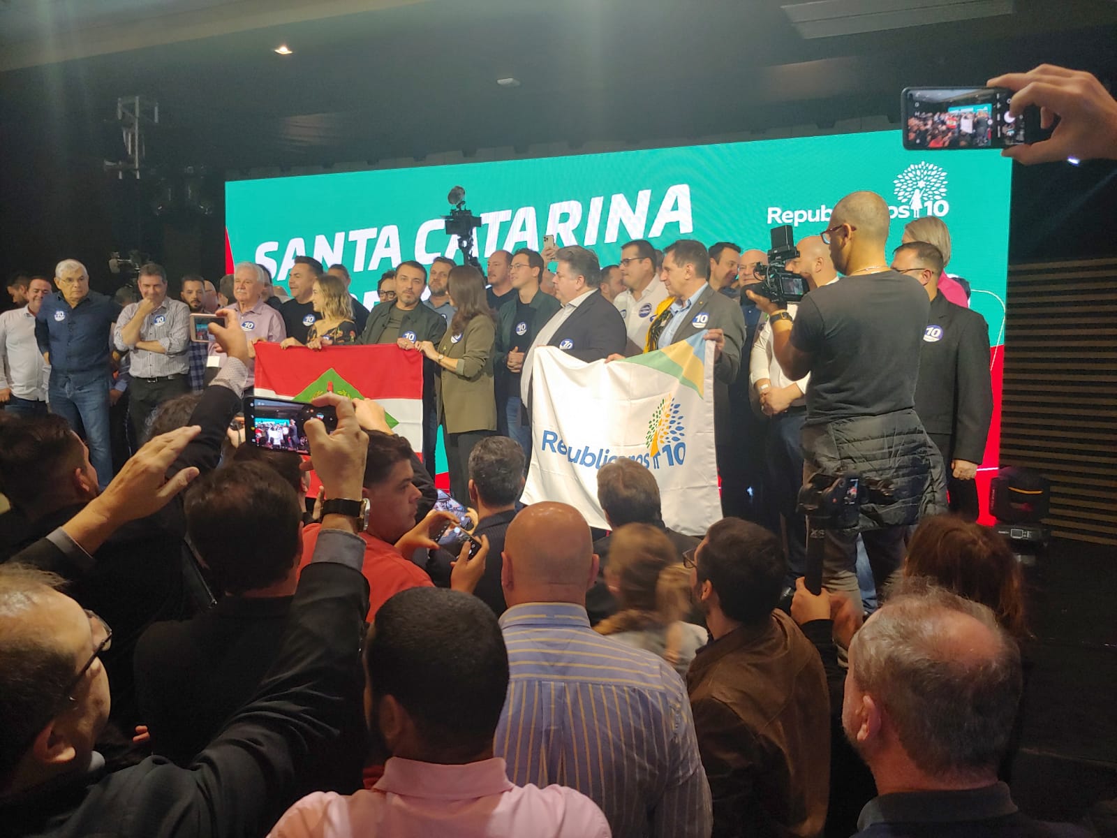 Outro que discursou em favor de Moisés foi o ex governador Eduardo Moreira (MDB), que falou em nome vários deputados que estavam no “comício”, que são do partido, mas, colocaram o adesivo do R-10 no peito. Era possível ver Moacir Sopelsa (presidente da Assembleia Legislativa), Romildo Titon, Mauro de Natal, Jerry Comper, Dirce Heiderscheidt e Luiz Fernando ‘Vampiro’ Cardoso (que saiu correndo do lançamento de Zilli em Araranguá) no palanque do governador.
