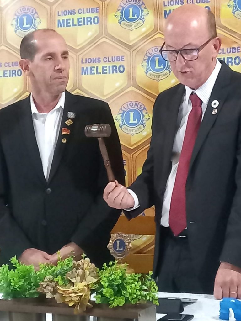 Na semana passada Reginaldo Ghellere tomou posse como como presidente do Lions Clube de Meleiro, quando recebeu do ex presidente Rogério Frischknecht o cargo e o martelo que simboliza o poder da autoridade do presidente.
