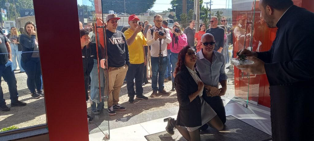 Depois dos discursos, coube ao padre Claiton Silva da Conceição, da Paróquia São José, a missão de abençoar o empreendimento, orar pelo sucesso nesta nova aquisição da família, até o ato de corte da fita inaugural e permissão do público para conhecer o interior da loja.