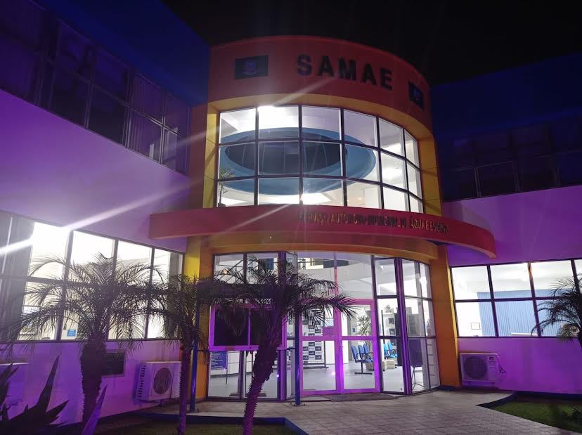 A fachada do prédio da unidade administrativa do Serviço Autônomo Municipal de Água e Esgoto (SAMAE) recebeu na noite desta segunda-feira, dia 1º, iluminação da cor lilás, em referência à Campanha Nacional de conscientização pelo fim da violência contra a mulher. Esta iluminação especial será utilizada até 31 de Agosto.