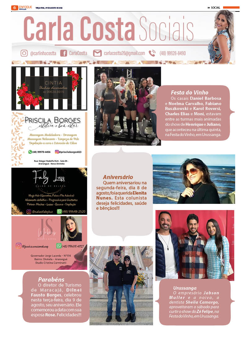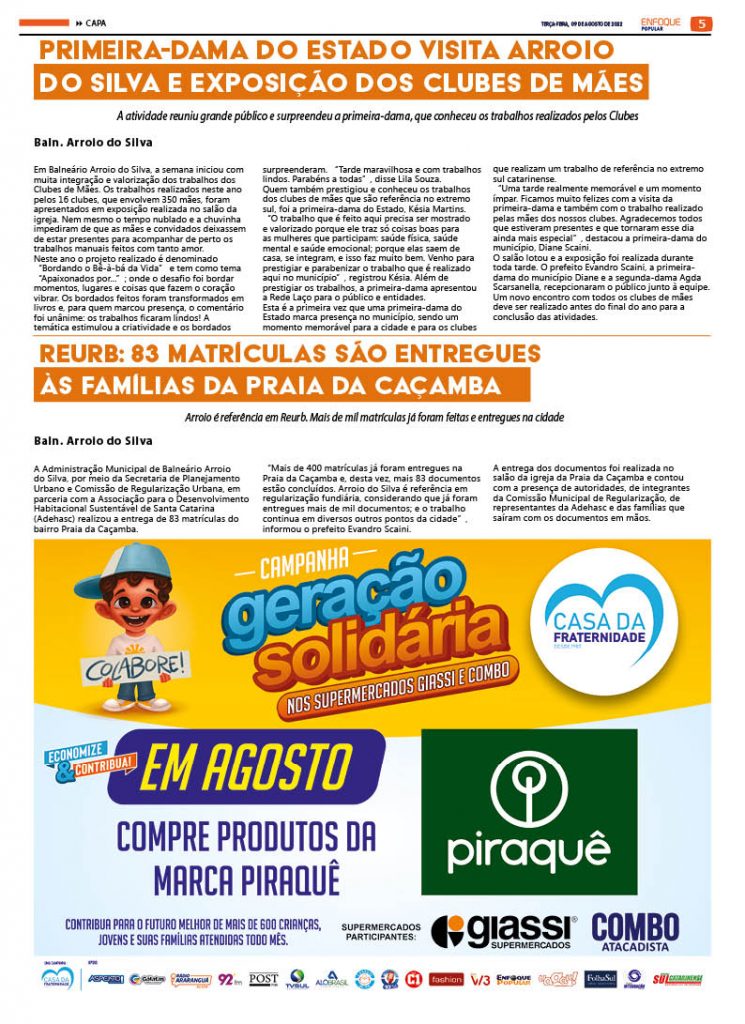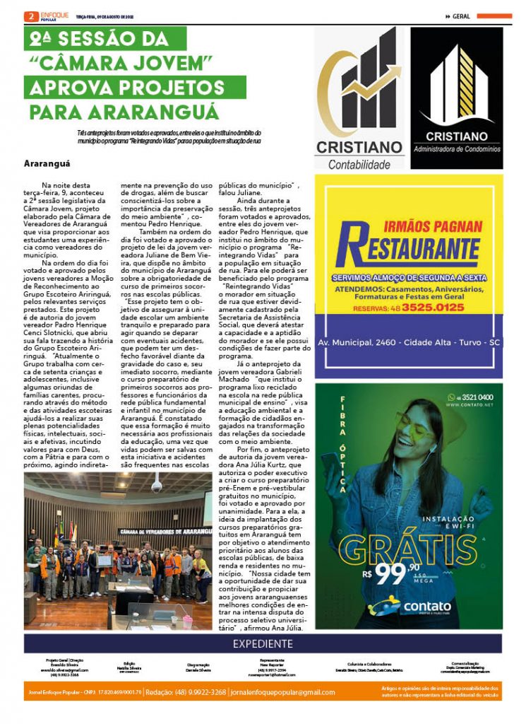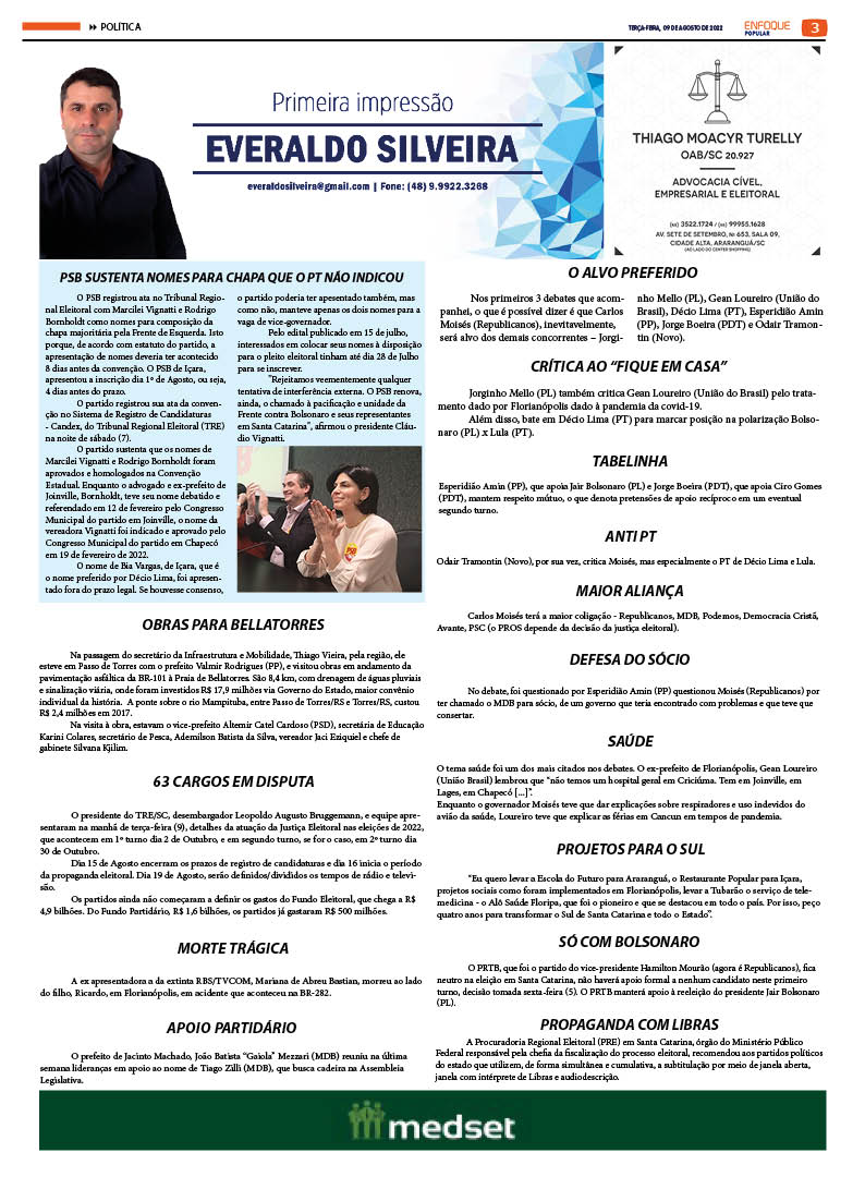 Edição 2679 – JORNAL ENFOQUE POPULAR – 09 de Agosto de 2022 – Terça-feira