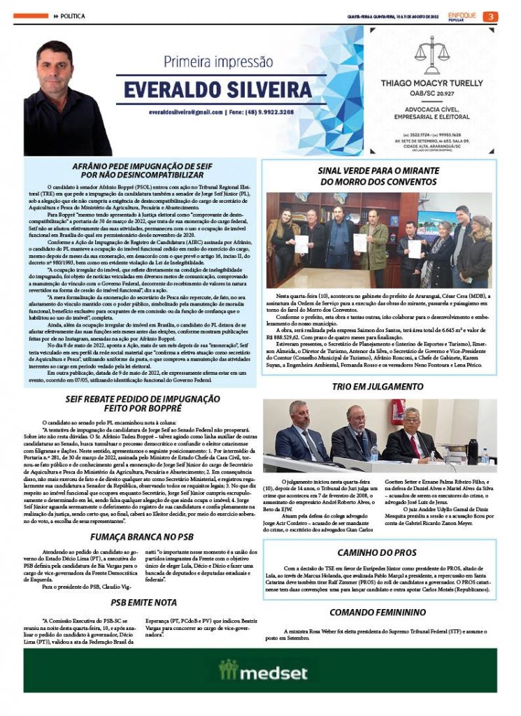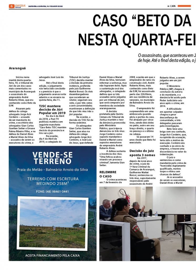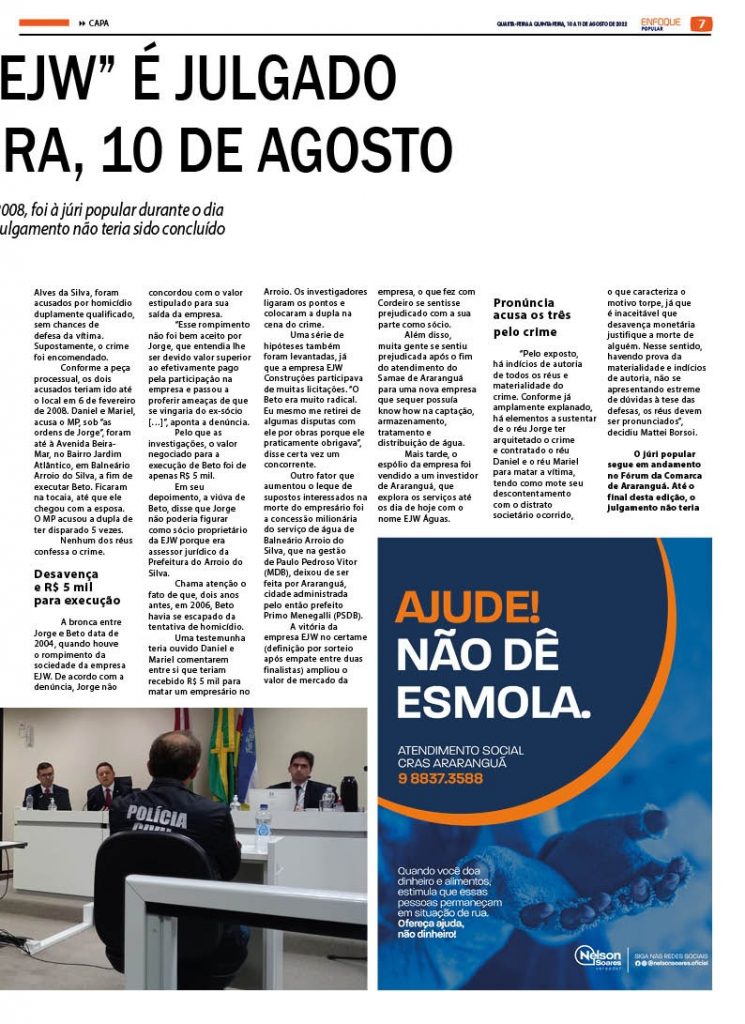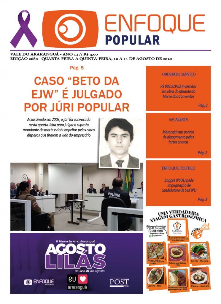 Edição 2680 – Jornal Enfoque Popular – 10 a 11 de Agosto de 2022 – Capa – Júri Caso Beto