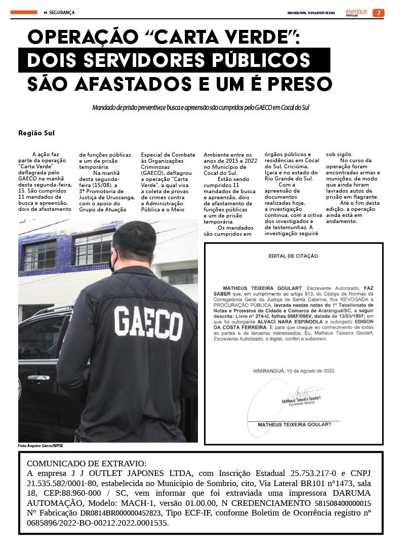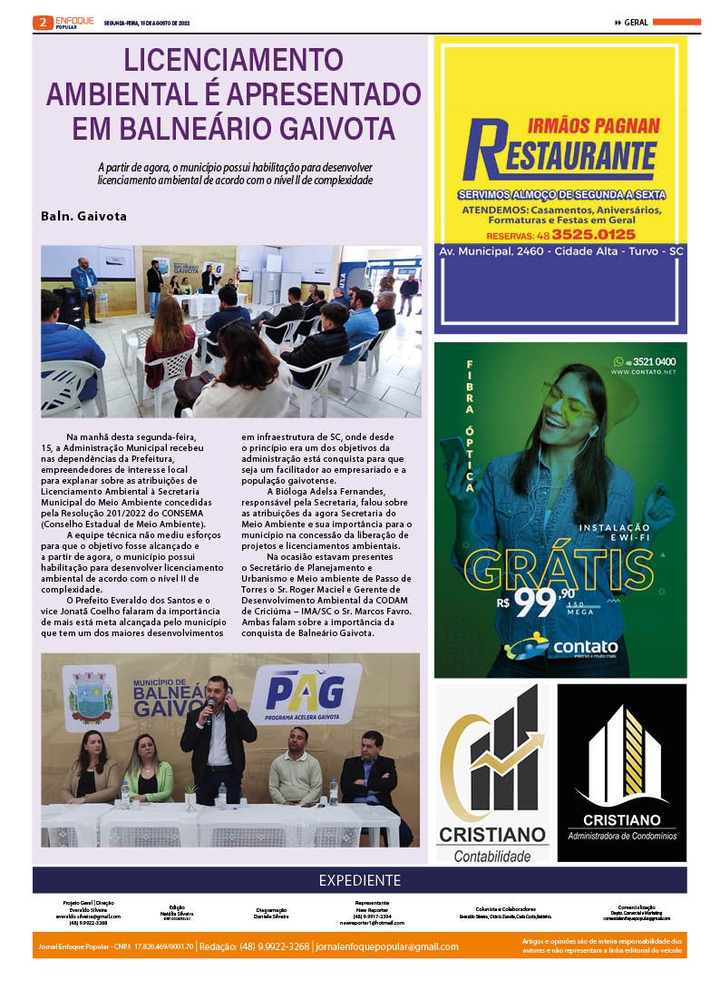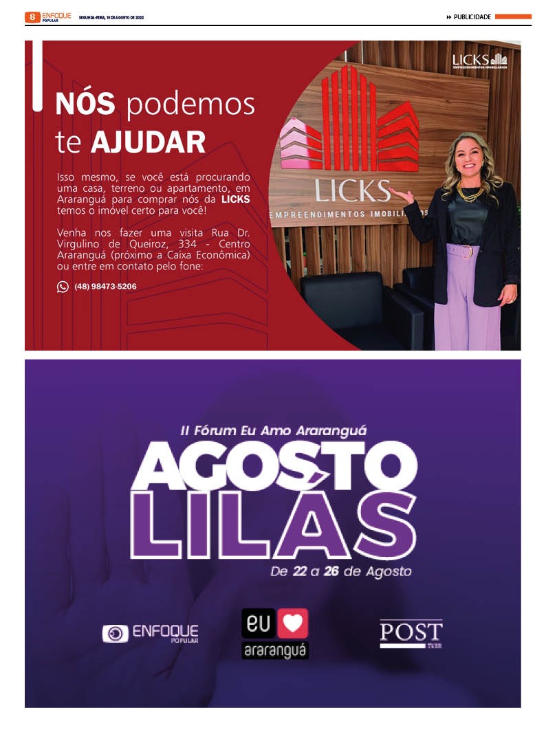 Edição 2682 – 15 de agosto de 2022- Jornal Enfoque Popular