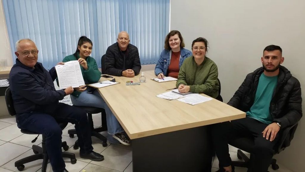 O ato de assinatura do contrato com a empresa foi realizado na presença do prefeito Evandro Scaini, vice Carlos Scarsanela, diretor de planejamento urbano, Douglas Tomazini e a engenheira civil do município Beatriz Abel.