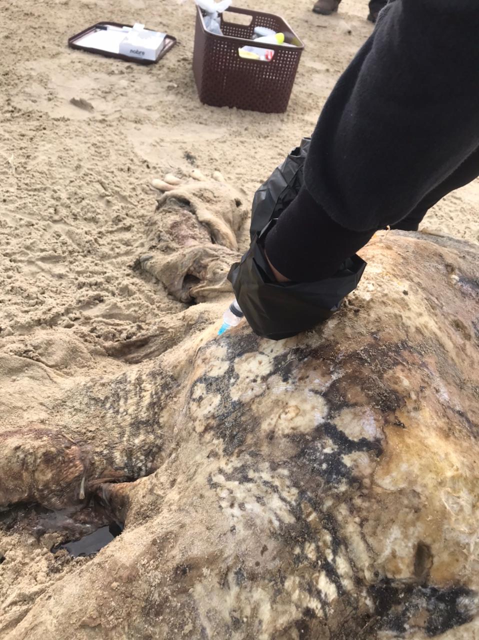 A pedido do Prefeito de Araranguá, Cesar Cesa, a Administração Municipal, com a ajuda da equipe da Educamar (instituição para resgate, pesquisa e monitoramento de animais marinhos), realizou neste último sábado, dia 13, a coleta de amostras das carcaças de animais marinhos, que surgiram na orla do município. Tratam-se de duas tartarugas-de-couro, uma tartaruga-cabeçuda e uma baleia.