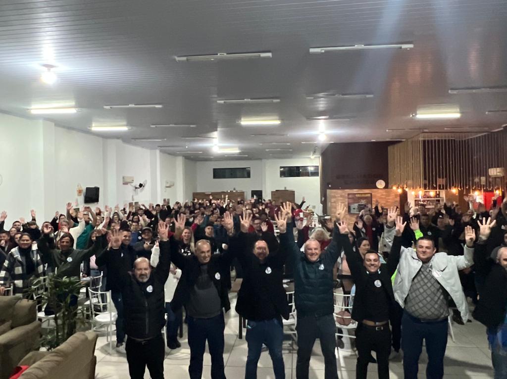 O encontro, realizado no CentroSerra, contou adesivaço e com a presença de candidatos à Câmara Federal e à Assembleia Legislativa, prefeitos, vice-prefeitos, vereadores e lideranças dos três partidos.
