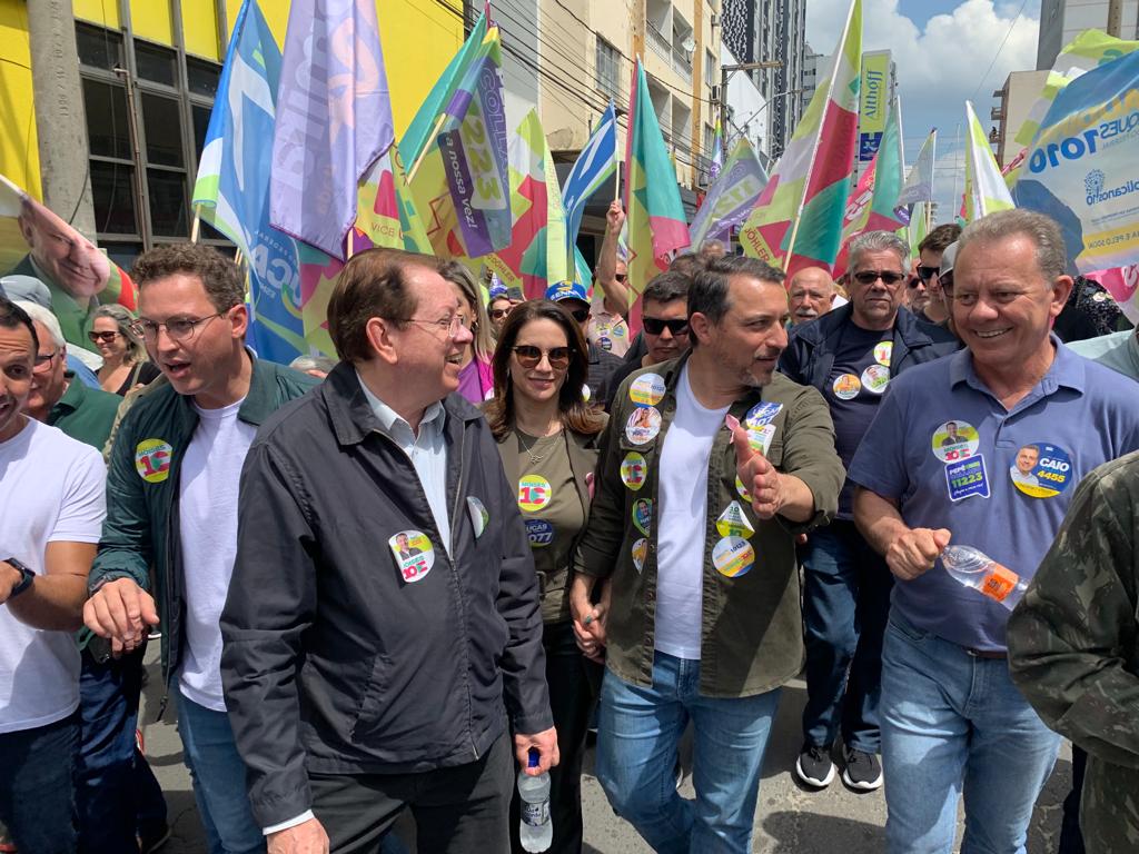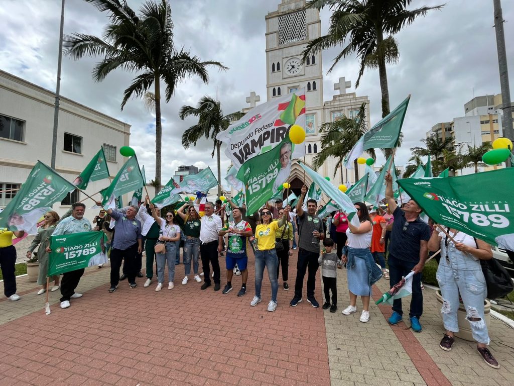 Araranguá foi movimentada pelos candidatos a deputado neste sábado (1/10). Tiago Zilli (MDB) fez bandeiraço para encerrar a campanha. Fez uma caminhada pela Avenida 7 de Setembro e terminou em frente à Igreja Matriz Nossa Senhora Mãe dos Homens.