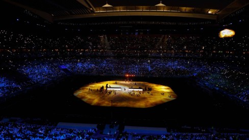 Com uma grande mancha amarela em um dos fundos em algumas arquibancadas predominantemente pretas e brancas, as cores da vestimenta tradicional dos cataris – o ‘dishdasha’ para os homens e o ‘abaya’ para as mulheres – sem áreas reservadas por gênero, a cerimônia continuou com uma homenagem às Copas anteriores, com as mascotes de cada uma das edições passadas.