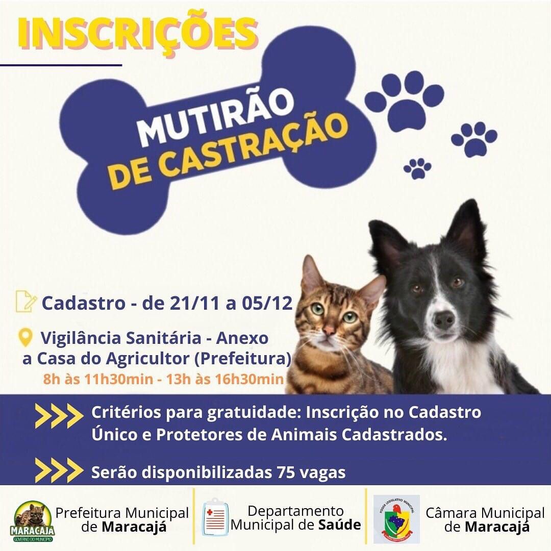 Uma parceria entre a Administração Municipal de Maracajá e a Câmara de Vereadores, vai resultar na castração de 75 animais – cães e gatos.