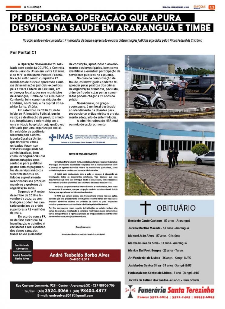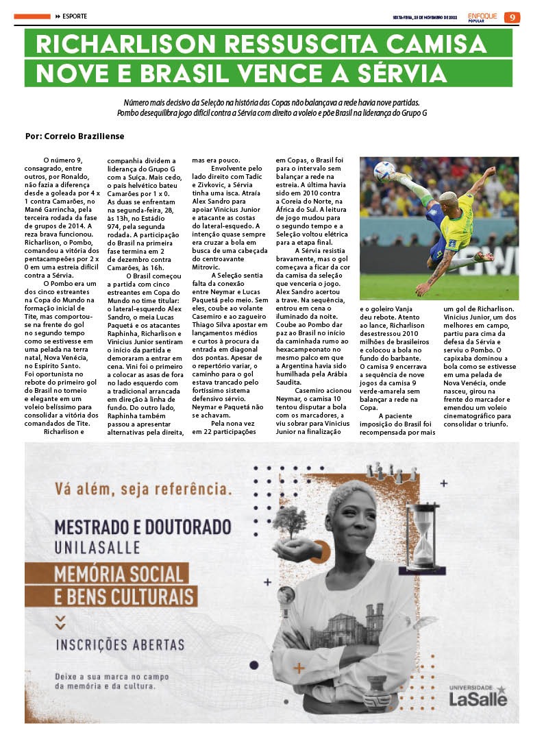 Jornal Enfoque Popular – Edição 2687 – 25 de Novembro de 2022 – Capa: Brasil na Copa