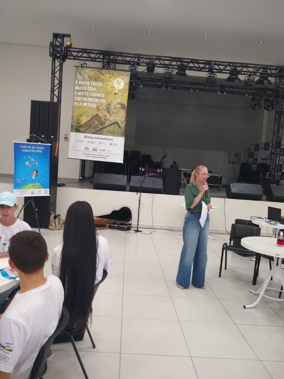 ”Proteção ao Trabalho Infantil”, com Maria de Fátima Chioca, Assistente Social e Frederico Alvim Carvalho, Psicólogo, ambos técnicos da Equipe Estadual do PETI e a palestra ”Promoção ao Trabalho Aprendiz”, com Dr. Ismael Córdova, Especialista em Sistema Único de Assistência Social e Diretor da Secretaria de Estado de Assistência Social, Trabalho e Habitação.