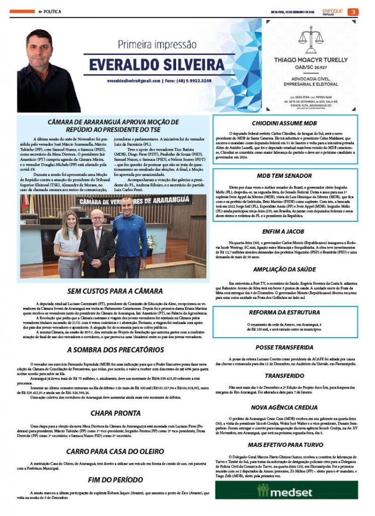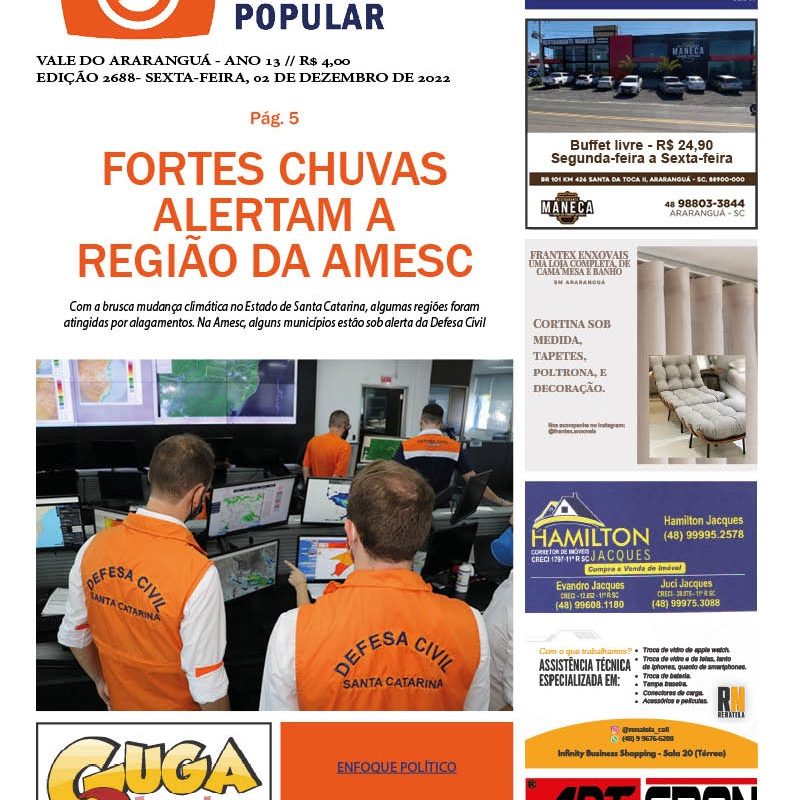 JORNAL ENFOQUE POPULAR – EDIÇÃO 2688 – 02 DE NOVEMBRO DE 2022 – CAPA: MAU TEMPO