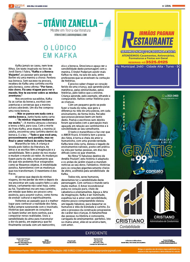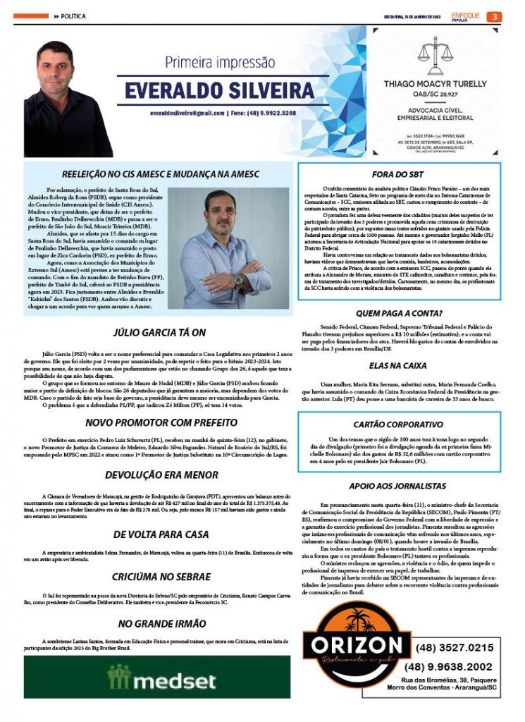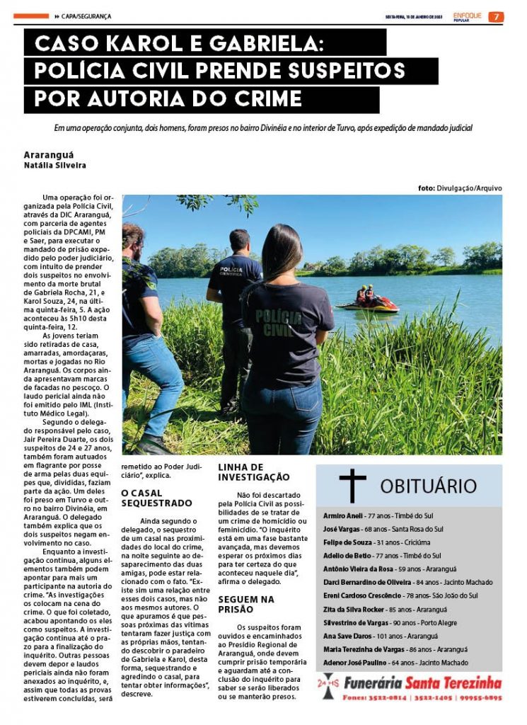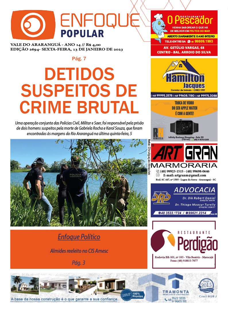 JORNAL ENFOQUE POPULAR – EDIÇÃO 2694 – 13 DE JANEIRO DE 2023 – CRIME BRUTAL