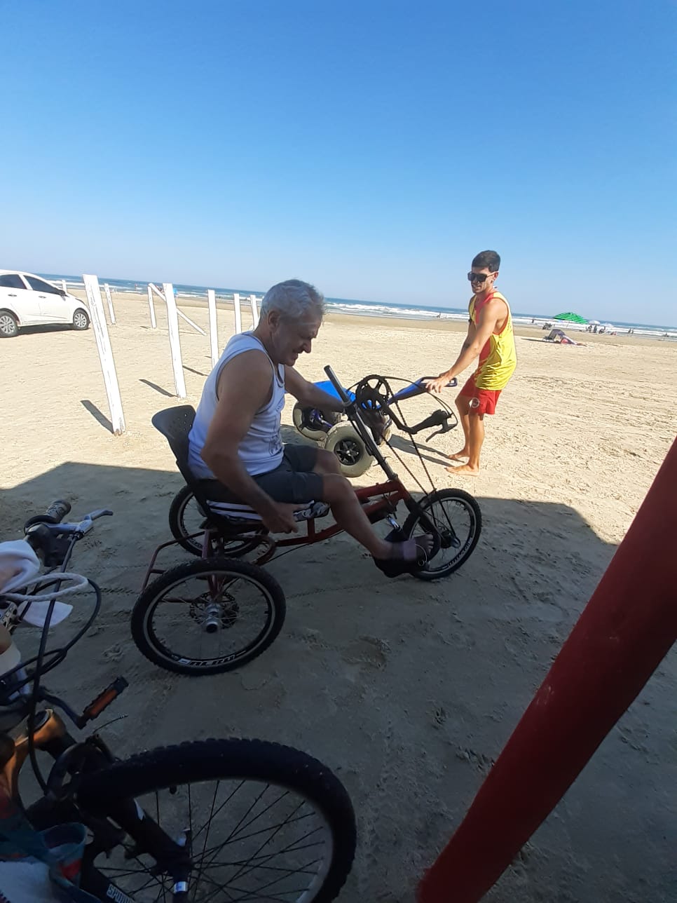 Aline nos contou que Salesio Camilo é um senhor de 70 anos que ama o mar. E há 4 meses, sofreu um acidente em que ficou paraplégico. Após o ocorrido, a sua maior vontade era estar novamente no mar.
