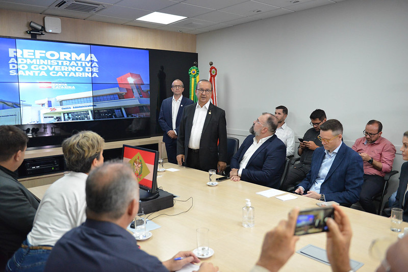 A reforma administrativa das secretarias e órgãos estaduais foi detalhada pelo governador Jorginho Mello e pelo secretário da Administração, Moisés Diersmann, em uma coletiva de imprensa nesta sexta-feira, 24. Dentre as novidades, está a criação de quatro secretarias e a alteração de nomes de pastas já existentes. A reforma tem o objetivo de organizar a máquina pública, trazer mais investimentos ao Estado e entregar melhores resultados à população. A Medida Provisória foi publicada no Diário Oficial do Estado e enviada para o legislativo nesta quinta-feira, 23.