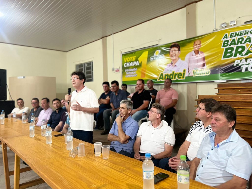 Uma grande reunião com a presença de associados, lideranças comunitárias, empresariais, do agronegócio e autoridades políticas, marcou o início da campanha da Chapa 1 para a eleição da CERSUL (Cooperativa de Distribuição de Energia). O evento realizado na noite de ontem, 7, em Meleiro, atraiu grande público, que fez questão de marcar presença para declarar apoio ao empresário Andrei Magagnin, candidato a presidente e seu vice, Valdo Rocha.
