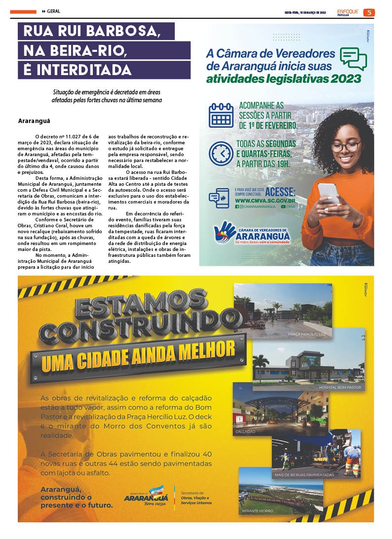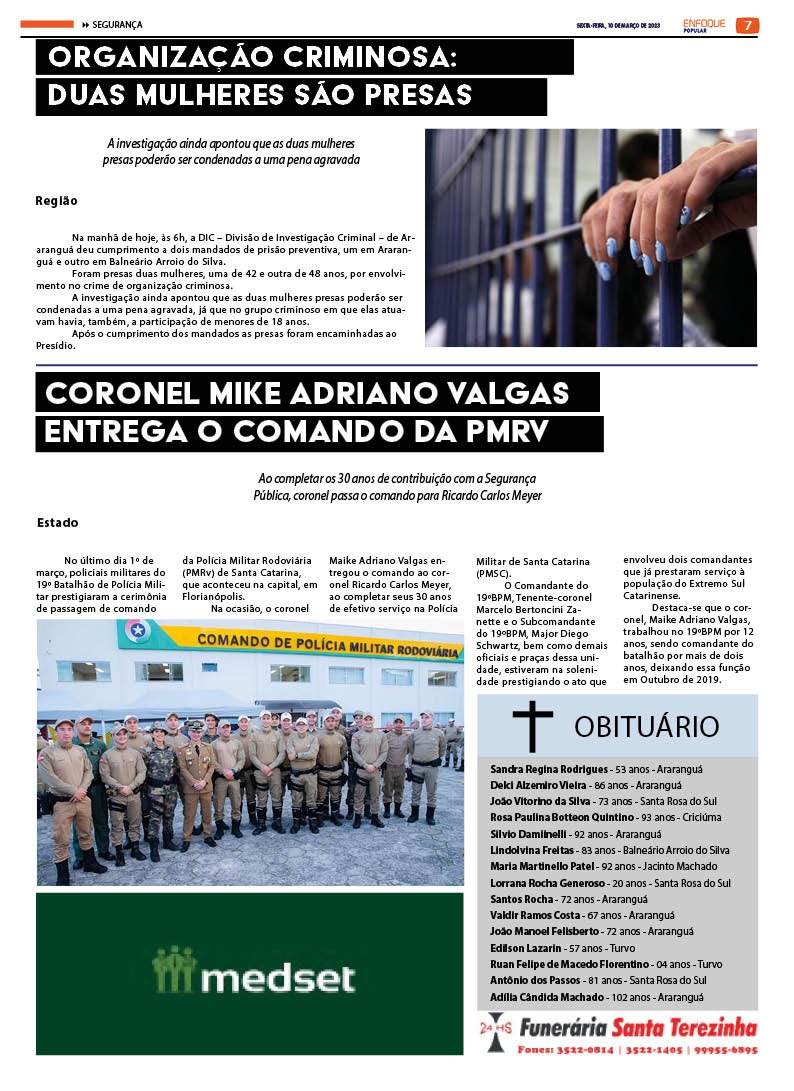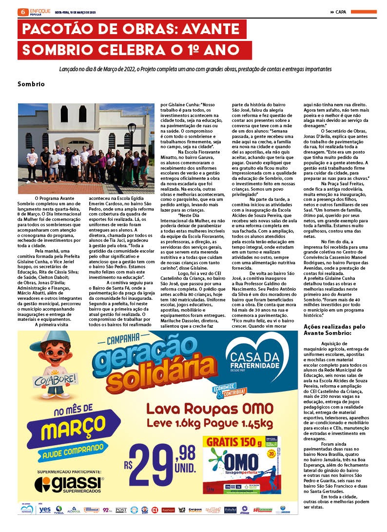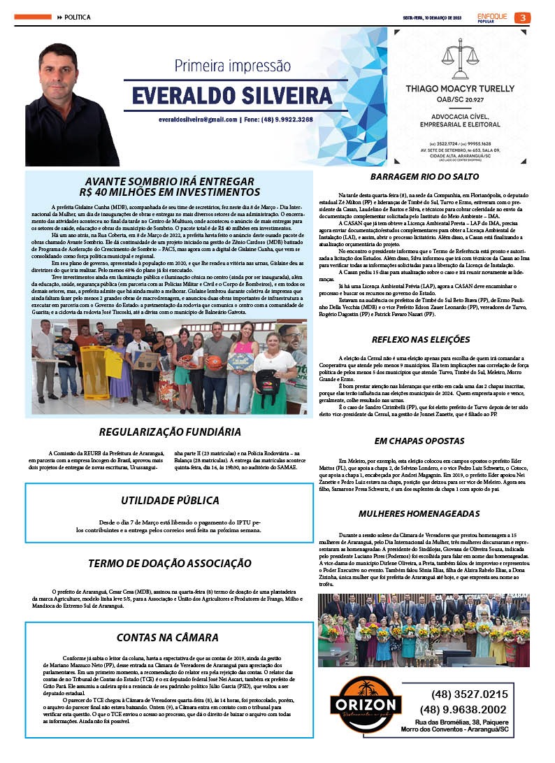 JORNAL ENFOQUE POPULAR – EDIÇÃO 2702 – 10 DE MARÇO DE 2023 – CAPA: 365 DIAS DE AVANTE SOMBRIO