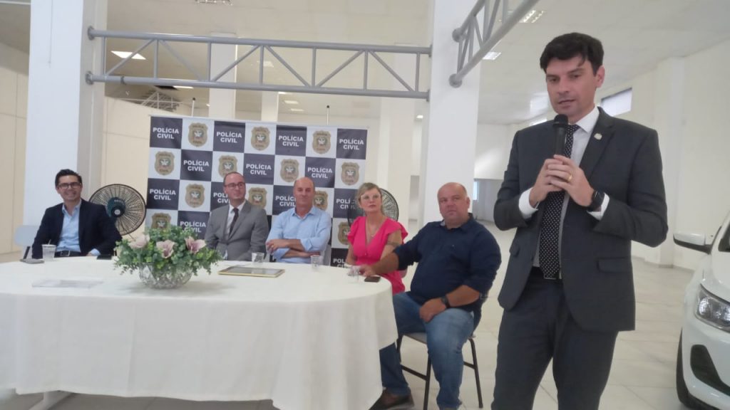 Pela terceira vez o Delegado Geral da Polícia Civil, Ulisses Gabriel, desembarca na região sul para anunciar melhorias, investimentos ou entregar equipamentos através do governo do estado. Primeiro foi Sombrio quem recebeu equipamentos, depois Forquilhinha que recebeu recursos para nova delegacia e agora Araranguá, nesta quinta-feira (16), quem recebeu duas viaturas descaracterizadas para uso da investigação da Polícia Civil.