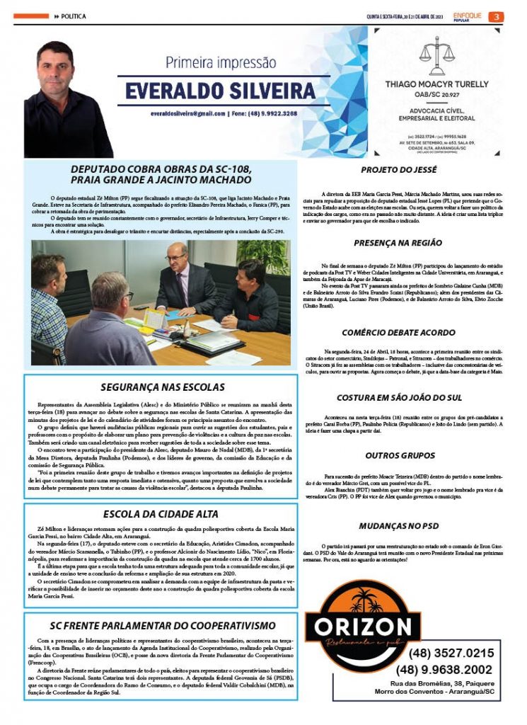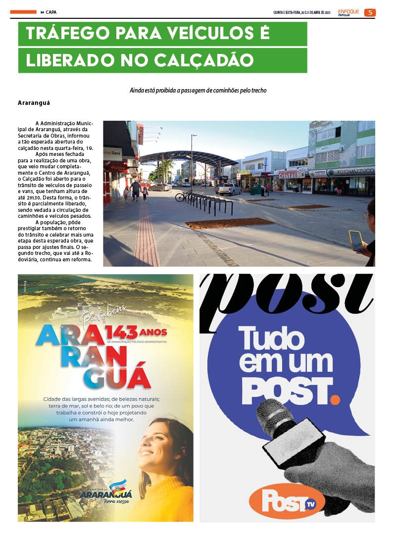 Jornal Enfoque Popular – Ed. 2708 – 20-04-2023 – Trânsito aberto no calçadão