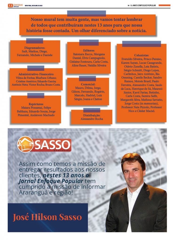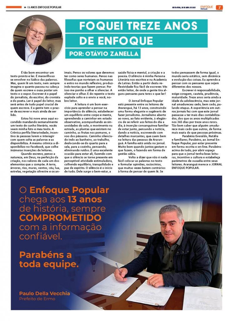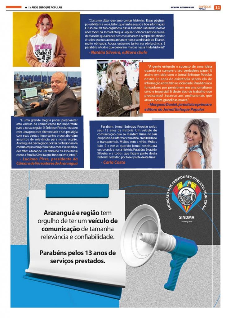 Jornal Enfoque Popular – Edição 2709 – 28-04-2023 – capa: Edição Especial 13 Anos