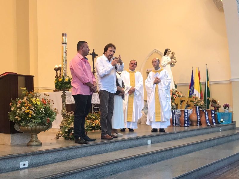 O Santuário de Araranguá, realizou nesta terça-feira, dia 2, a Missa de ”Benção das Medalhas e Imagens de Nossa Senhora Mãe dos Homens”, que contou com a presença do Prefeito, Cesar Cesa, da Primeira-Dama, Dione Cesa, do Vice-Prefeito, Cristiano Costa e dos Secretários.