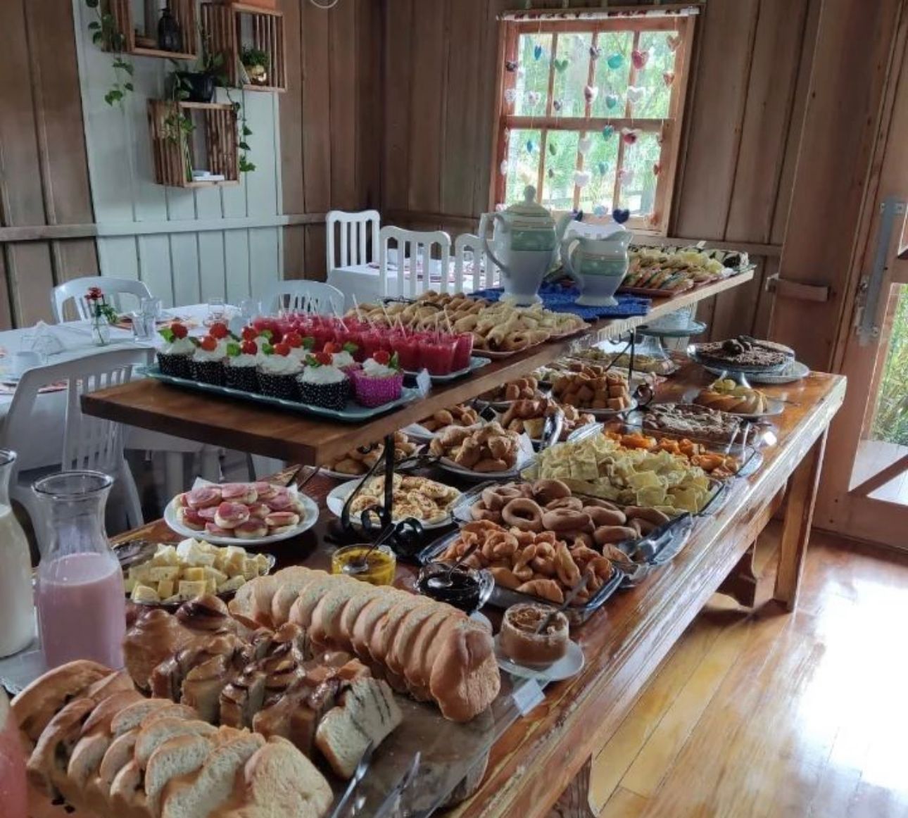 “É suco diretamente dos nossos cultivos, tortas, bolos, biscoito, geleias caseiras, chás, mini pizzas, todos devidamente preparados da forma mais caseira possível, a torta que traz a assinatura da minha mãe, dentre tantos outros alimentos que enchem os olhos”, destacou Daiana.