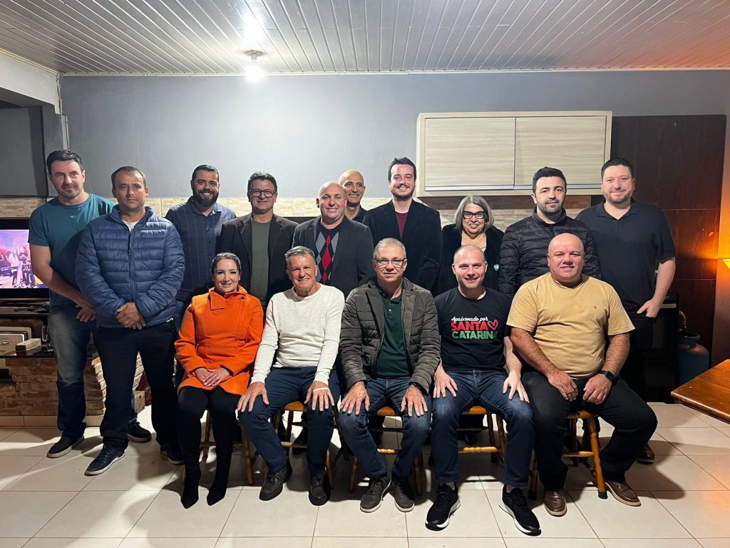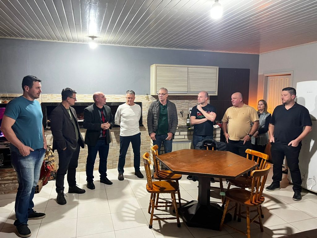 O encontro foi no gabinete do prefeito Evandro Scaini (Republicanos), com a presença do vice-prefeito Carlos Scarsanella (Republicanos), e da bancada de 5 vereadores do União Brasil na Câmara, Élvio Zocche (presidente da Casa), Lei do Mar Azul, Maria Alice Luciano, Alan da Ambulância e Pedrinho Coelho.