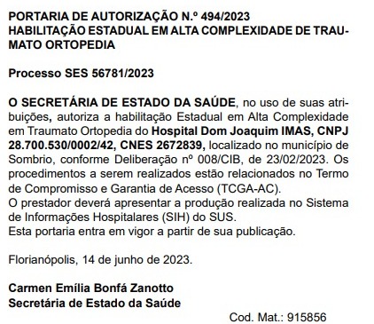 Há uma série de requisitos a serem cumpridos para que um hospital possa ser considerado apto para atuar na alta complexidade na área. O processo de credenciamento, habilitação e inclusão do Dom Joaquim estava tramitando na Secretaria de Estado da Saúde e a portaria de habilitação foi publicada no Diário Oficial do Estado no último dia 14 de junho.
