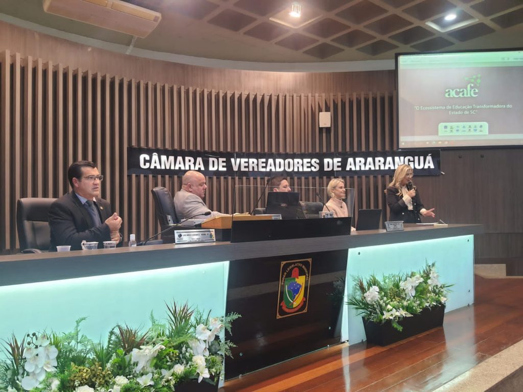 A presidente Associação Catarinense das Fundações Educacionais (Acafe) e reitora da Unesc, Luciane Bisognin Ceretta, participou da penúltima sessão de junho, realizada na segunda, 19, na Câmara Municipal de Araranguá.