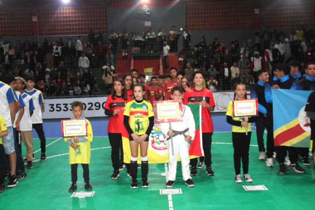 Sombrio é o anfitrião da fase regional sul dos Joguinhos Abertos de Santa Catarina! Na noite de ontem, 22, atletas de 20 municípios catarinenses, suas equipes técnicas, torcida, gestores municipais, professores do projeto Futuro do Esporte e representantes da Fundação Catarinense de Esporte – Fesporte, lotaram o Ginásio Municipal Rogério Valerim para a solenidade de abertura dos Joguinhos.