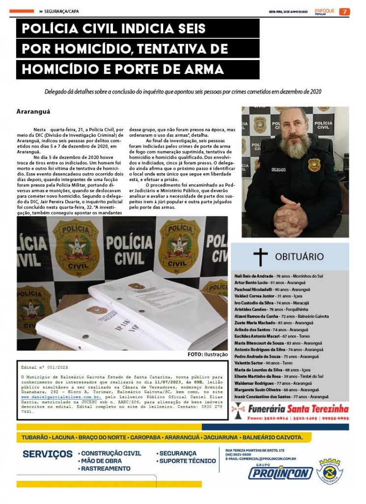 Jornal Enfoque Popular – Edição 2717 – 23-06-2023 – Capa: INQUÉRITO DE 2020 É FINALIZADO PELA POLÍCIA