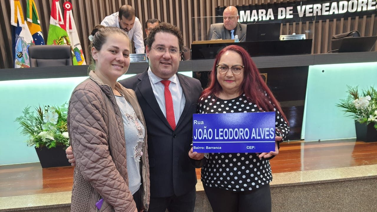 Depois de aprovada a lei, uma placa com o nome da rua foi entregue as representantes da família Alves pelo vereador propositor da homenagem.