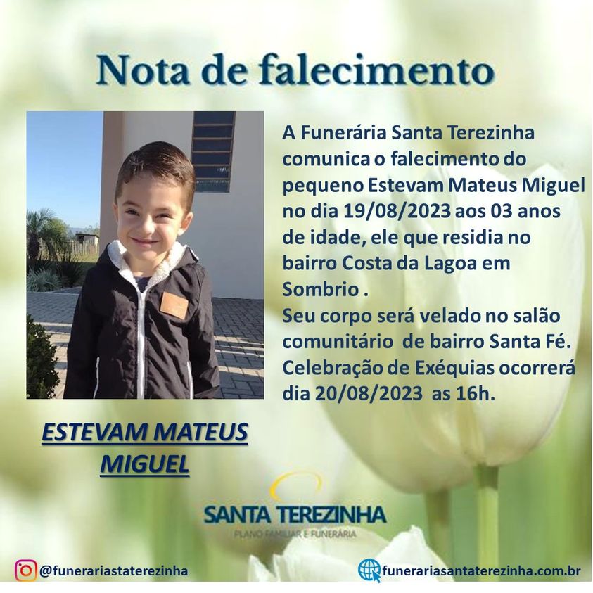 A Funerária Santa Terezinha trouxe informações sobre os funerais, que acontecem em Sombrio.