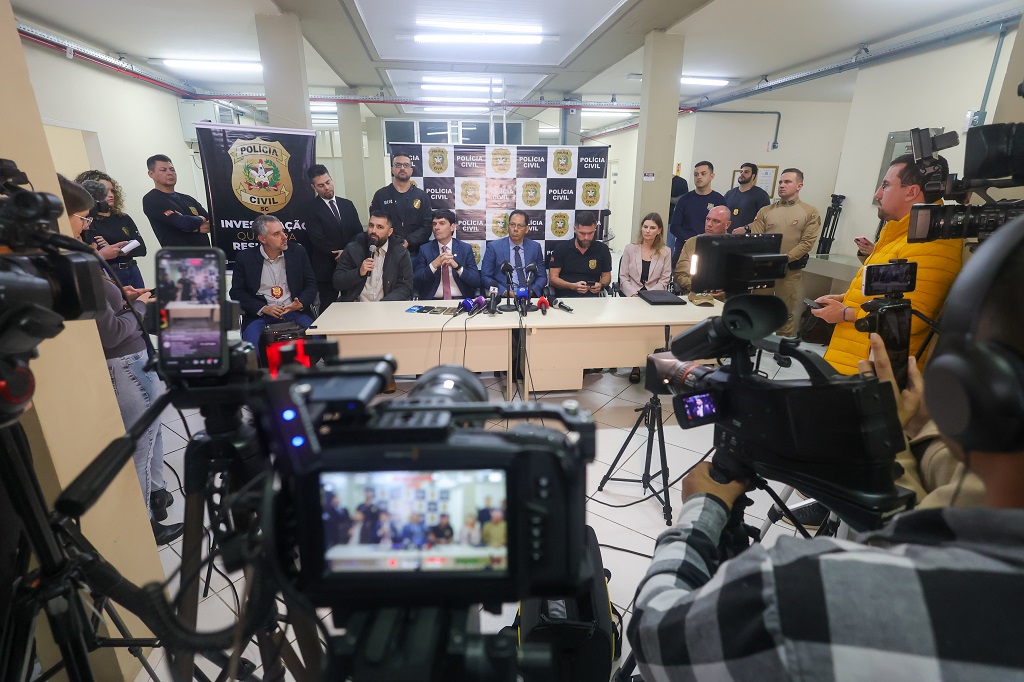 O delegado-geral da Polícia Civil de SC, Ulisses Gabriel, abriu a coletiva destacando a qualidade a efetividade da Polícia Civil em suas ações. “Eu sou um técnico que tem um grande time e tenho felicidade de estar na direção desta equipe que tem as pessoas certas, nos lugares certos. A nossa instituição é referência nacional e está se preparando para ser referência internacional”, enfatizou. Ulisses Gabriel agradeceu e parabenizou a união das forças de segurança para chegar ao melhor resultado: trazer a menina de volta à sua família.