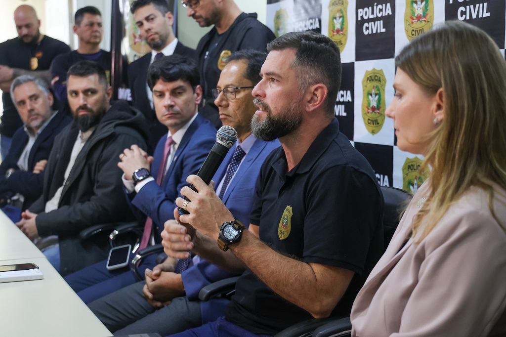 O delegado-geral da Polícia Civil de SC, Ulisses Gabriel, abriu a coletiva destacando a qualidade a efetividade da Polícia Civil em suas ações. “Eu sou um técnico que tem um grande time e tenho felicidade de estar na direção desta equipe que tem as pessoas certas, nos lugares certos. A nossa instituição é referência nacional e está se preparando para ser referência internacional”, enfatizou. Ulisses Gabriel agradeceu e parabenizou a união das forças de segurança para chegar ao melhor resultado: trazer a menina de volta à sua família.