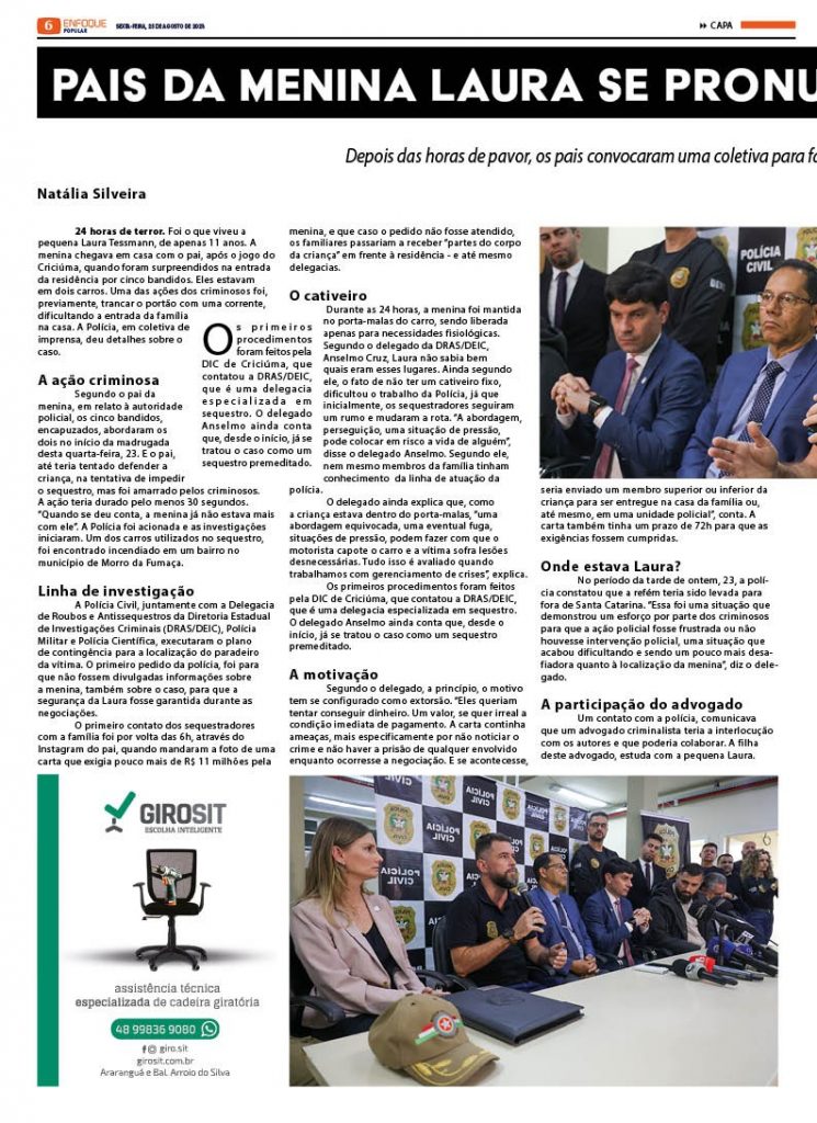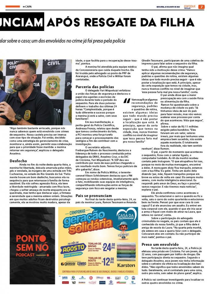Jornal Enfoque Popular | “Vida que segue” diz pai da menina sequestrada em criciúma | Edição 2726