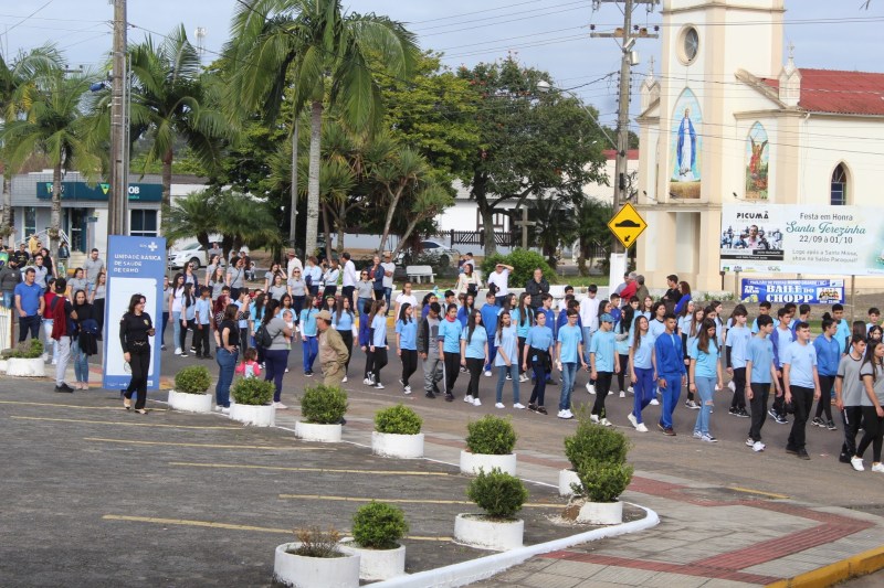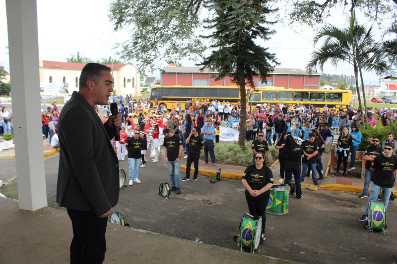 Com a chegada dos participantes do desfile no palanque oficial, foi feito o chamamento das autoridades para compor o local de destaque e o hasteamento das bandeiras, a cargo do prefeito Paulo Della Vecchia, Policial Civil, Maria Aparecida Casagrande e Comandante da PM de Ermo, Sargento Mauro Paes. Em ato contínuo, usaram da palavra o secretário de Educação, Marcelo Dal Toé Ferreira, o Vice-prefeito Edson Zauer Leonardo e o Prefeito Paulo Della Vecchia.