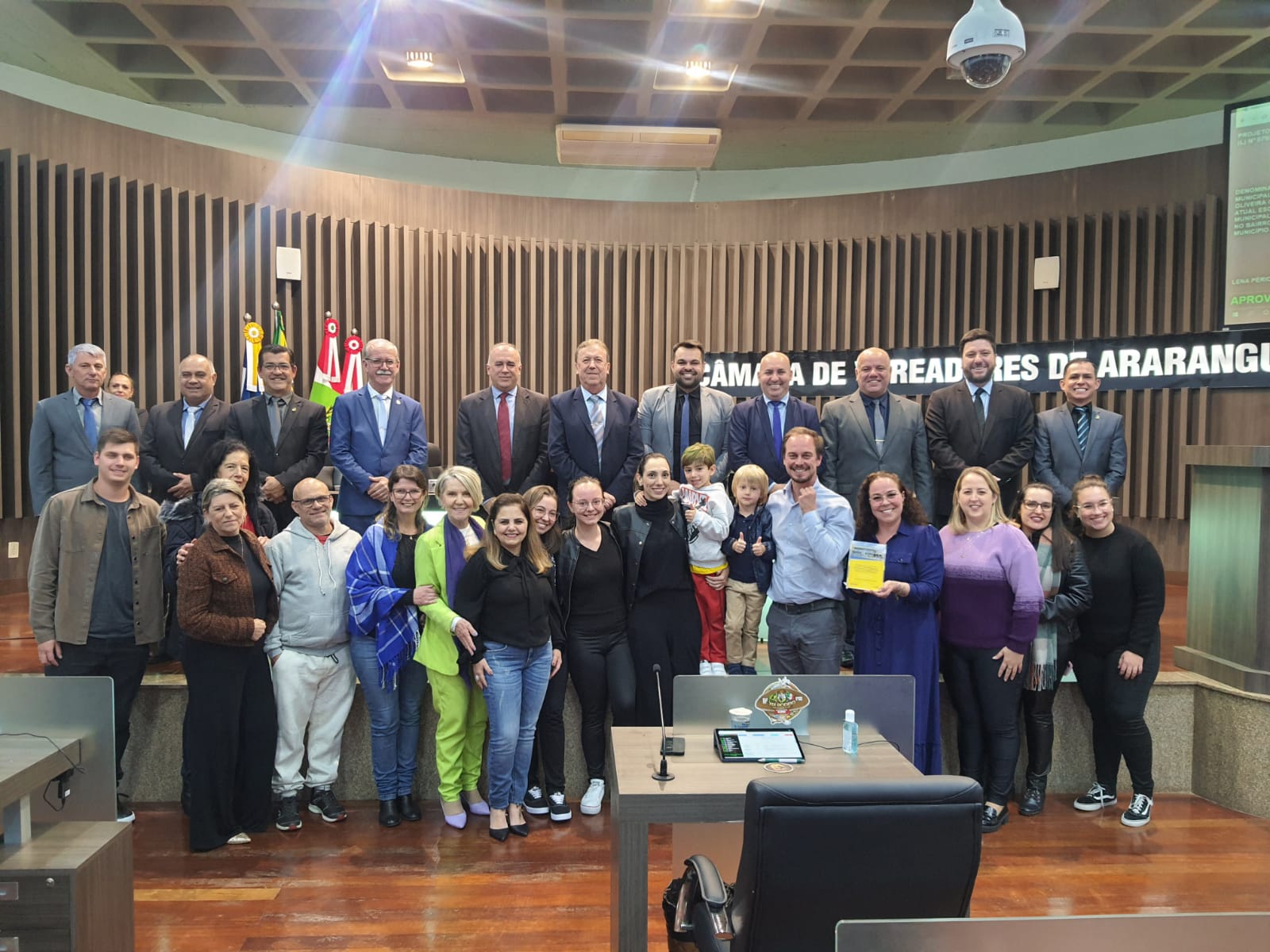 A sessão e homenagem foi prestigiada pela secretária de Educação, Mariluce Bilck e os filhos da professora, Júnior e Vanessa.