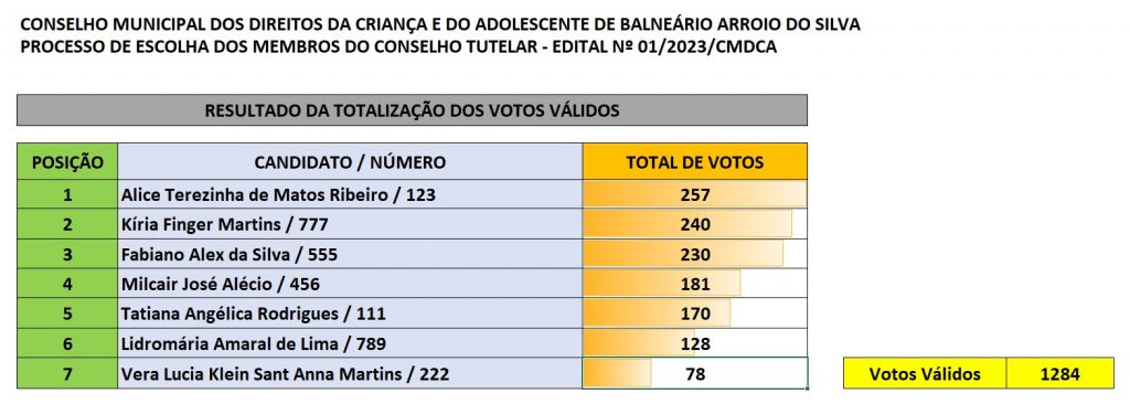Resultado eleição Conselho Tutelar de Balneário Arroio do Silva